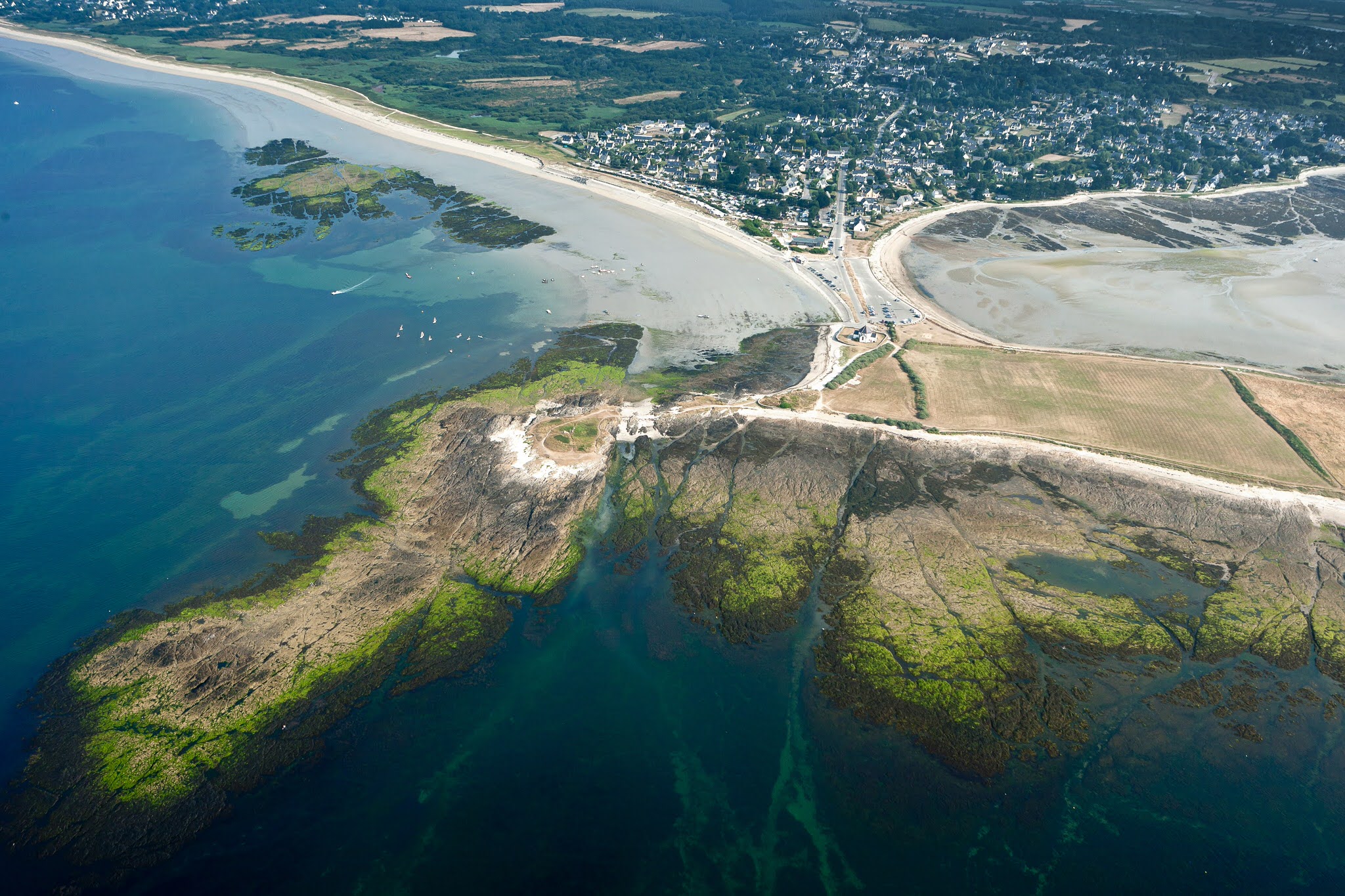 The Pointe de Penvins, a true haven of peace nestled in Sarzeau, on the Rhuys Peninsula, attracts the eye from afar with its charming chapel caressed by the waves. This corner of Brittany offers the perfect opportunity to savor the salty air during a pleasant walk or a day by the sea. Ideal for sporting activities such as kitesurfing, kite flying, sailing, etc. , it is also ideal for family outings.